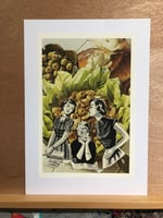 This original artwork measures 16(w) x 24(l) cm and has been mounted to an A4 card for easy framing.