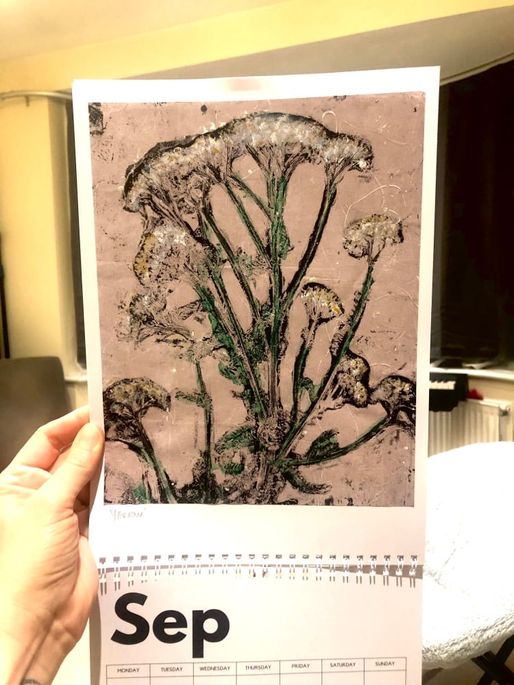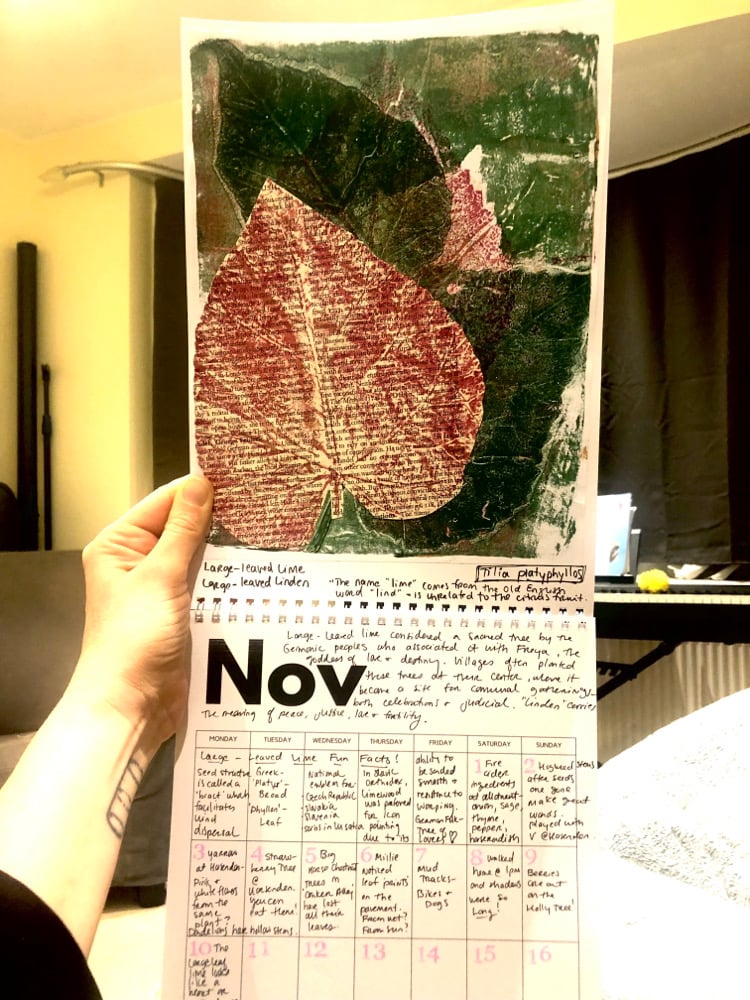 The completed collage in the photo is an example only- the calendar is blank. Each calendar comes with a few unique, vintage papers that will vary with each calendar.